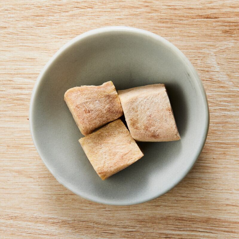 高タンパク質・低脂質のマグロをそのままフリーズドライに仕上げました。フードのトッピングや手作りごはんの具として幅広くお使い頂けます。