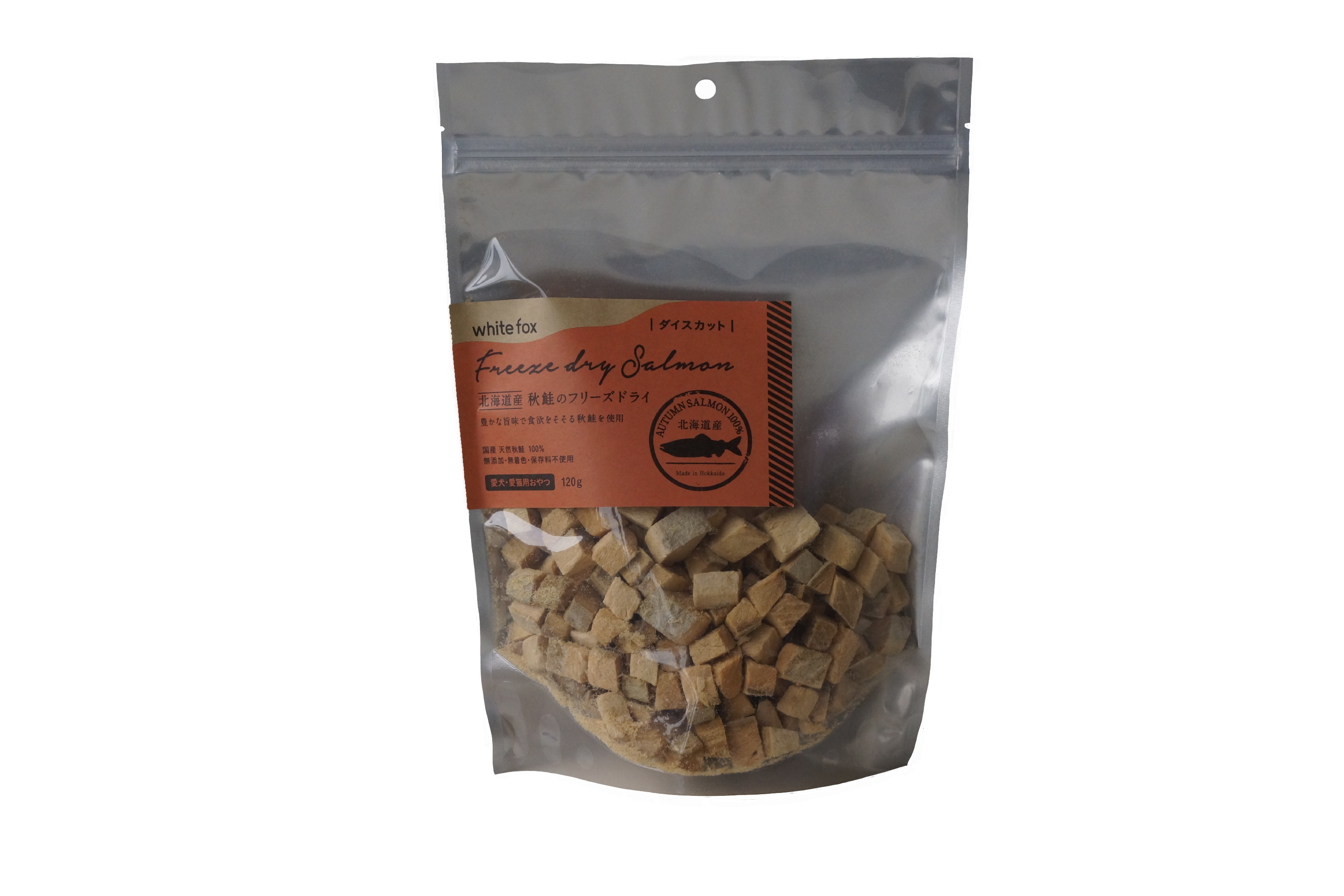 新たに「【ホワイトフォックス(whitefox)】 北海道産 秋鮭のフリーズドライダイス 17g」が登場です!