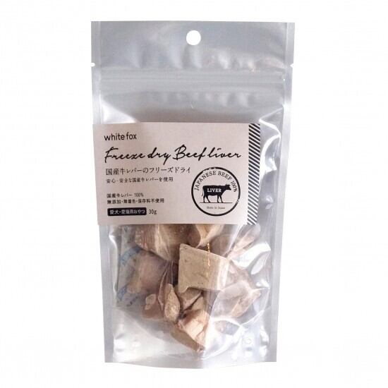 「【ホワイトフォックス(whitefox)】国産牛レバーのフリーズドライ(愛犬・愛猫用) 30g」で、愛するペットに美味しさと健康をお届けしましょう!