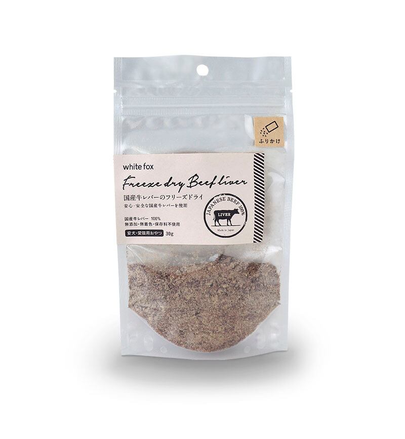 新たに「【ホワイトフォックス(whitefox)】国産牛レバーのフリーズドライふりかけ(愛犬・愛猫用) 30g」が登場です!