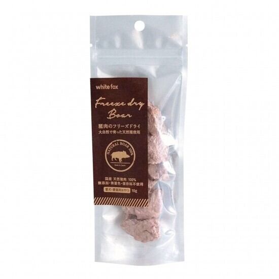 「【ホワイトフォックス(whitefox)】猪肉のフリーズドライ」は、新鮮な国産猪肉を使用し、その栄養価をしっかりとお届けする特別なアイテムです!愛犬・愛猫の健康を考えた、無添加で美味しさがギュッと詰まった逸品です。
