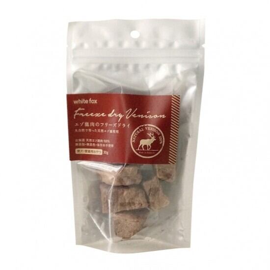 新たに「【ホワイトフォックス(whitefox)】エゾ鹿のフリーズドライ(愛犬・愛猫用) 30g」が登場です!