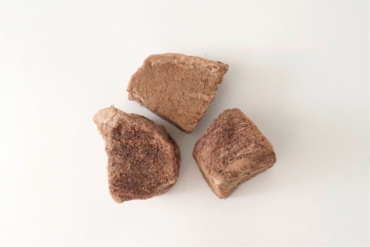 酸化を防ぐため、できる限り空気に触れる時間を短縮して真空冷凍乾燥しているので、新鮮なお肉の旨味がそのまま凝縮されています。