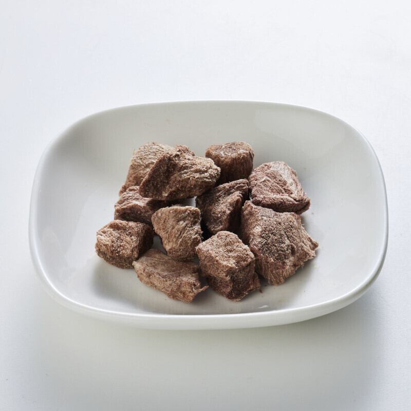 私たち人間も大好きな牛肉!牛肉独特の旨みと甘みは他のお肉に代え難い魅力があります。この美味しい牛肉を国内初!フリーズドライ加工にしました。