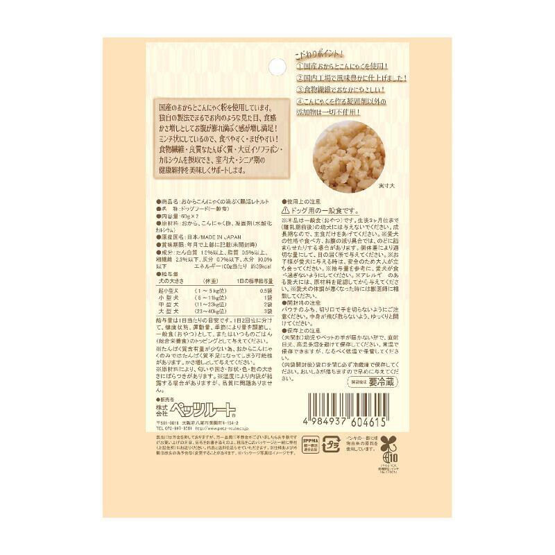 「【ペッツルート(Petz-Route)】おからこんにゃくの満ぷく腸活レトルト 60g×2p」で、大切な愛犬に美味しさと健康を届けましょう!
