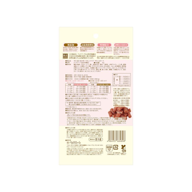 このフードは、チキンとホースの豊かな風味に加え、子犬にも食べやすいやわらかい食感が特長です!毎日の食事を楽しいものにし、愛犬の健康維持に貢献します。おやつやごはんとしても最適なおいしさが広がります。