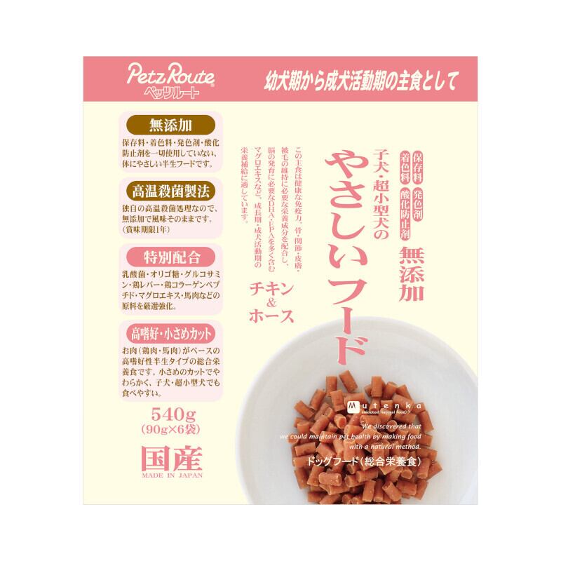 「【ペッツルート(Petz-Route)】子犬・超小型犬用やさしいフード チキン&ホース 540g」で、大切な愛犬に美味しさと健康をしっかりと届けましょう!