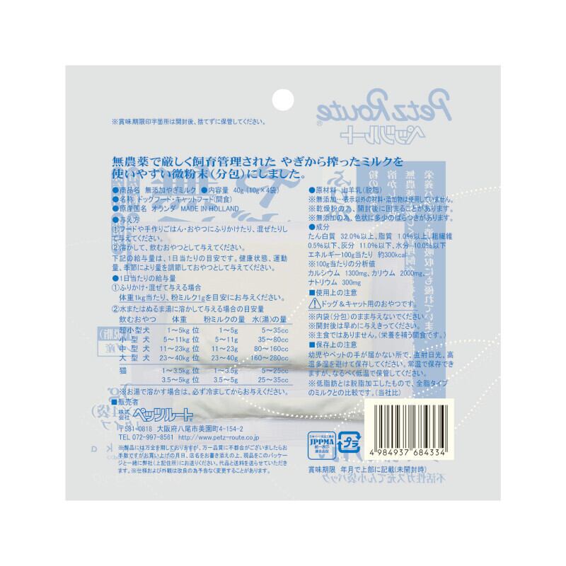 「【ペッツルート(Petz-Route)】無添加やぎミルク 40g」で、大切な愛犬や愛猫に美味しさと健康をしっかり届けましょう!