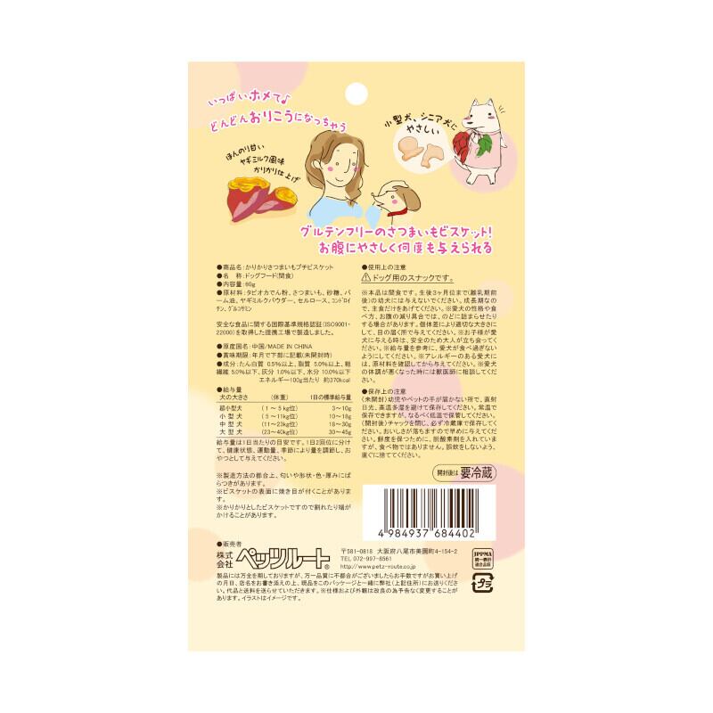 「【ペッツルート(Petz-Route)】かりかりさつまいもプチビスケット 60g」で、大切な愛犬や愛猫に美味しさと健康をしっかり届けましょう!