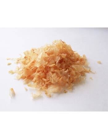血合い抜き鰹の淡白な味です。ふわふわで小さめの削りが独特な風味とライトな旨みを際立てます。ふりかけとしても便利です。