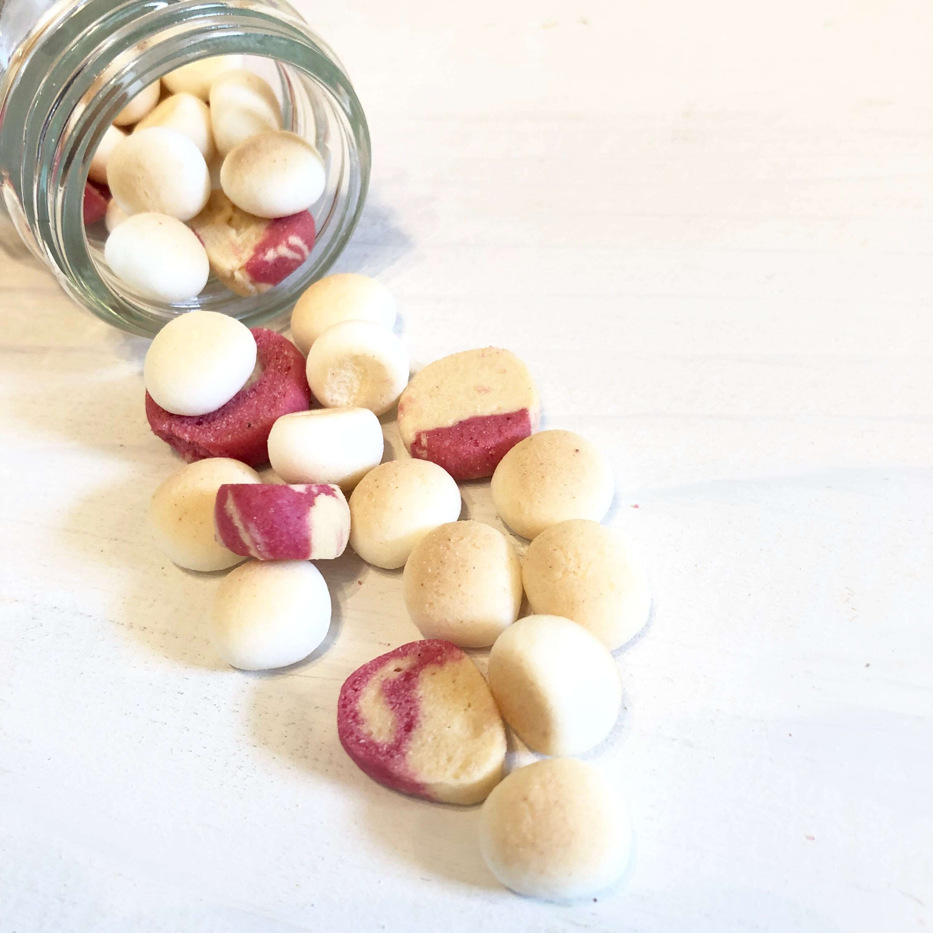 厳選された苺とみるくのみを使用し、添加物や保存料は一切使用しておりません。大切な愛犬に安心して与えられる、ナチュラルな素材にこだわったおやつです。