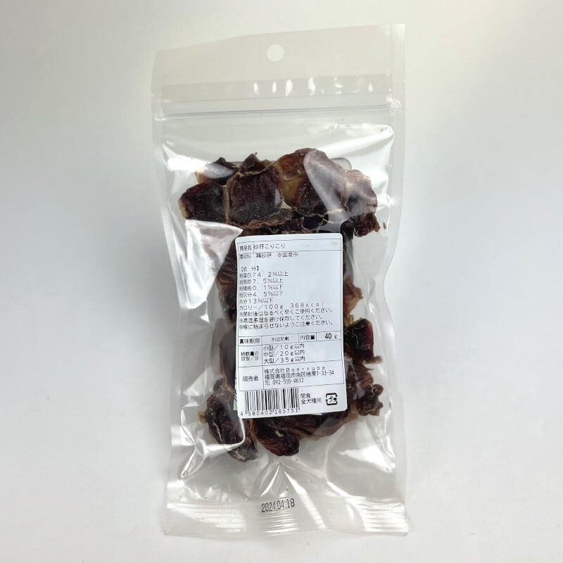 「砂肝こりこり」は、香ばしい味わいとコリコリとした食感が特徴で、愛犬の食欲を引き立てます。30gの適度なサイズは、全ての犬種に最適で、愛犬のおやつタイムをより楽しいものに演出します!
