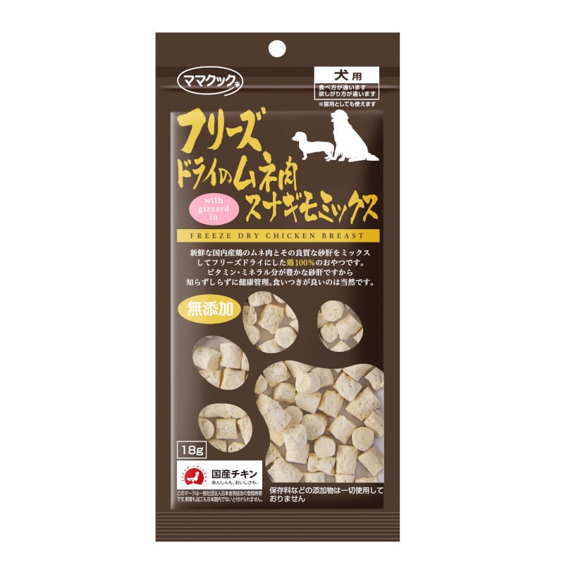 【ママクック】 フリーズドライのムネ肉 スナギモミックス 犬用 18g