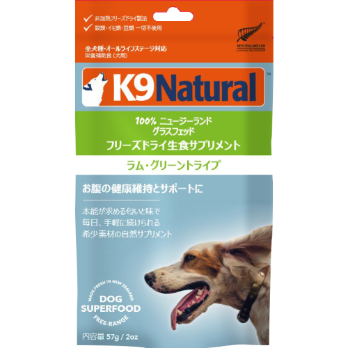 「K9ナチュラル」フリーズドライ ラム・グリーントライプ 57gをぜひお試しいただき、愛犬に喜びと健康を届けましょう!