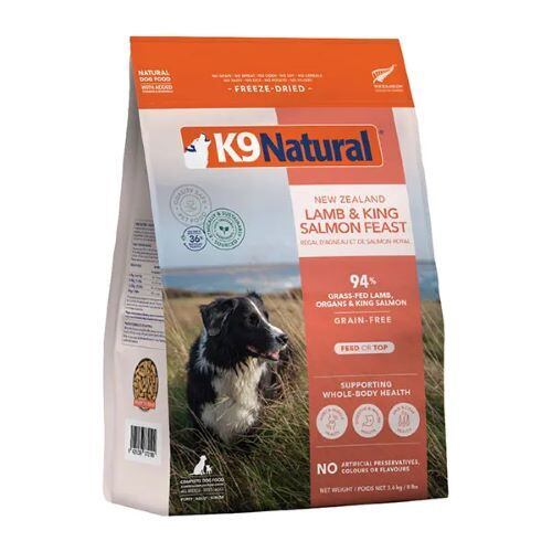「K9ナチュラル」フリーズドライ ラム&キングサーモン 3.6kgは、ニュージーランド産の高品質ラムと新鮮なキングサーモンを使用した、栄養たっぷりの食事です!特殊なフリーズドライ製法により、素材の豊かな風味と栄養をそのまま封じ込め、愛犬との特別なひとときを演出します。