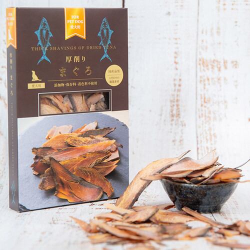 厚削りまぐろは、愛犬との特別なひとときを演出するために開発されました。普段のおやつだけでなく、特別な日のご褒美にも適しています。愛犬の嬉しそうな表情を見られる嬉しい商品です!