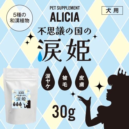 【ALICIA】涙姫 30gは、あなたと愛するペットのために開発された健康補助食品です!特に涙やけや皮膚の健康をサポートし、心地よい毎日を提供します。