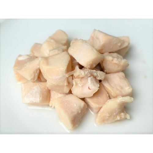 鶏肉を一口サイズにカットし、真空調理で柔らかくジューシーに仕上げました。離乳後のパピーからシニアまで幅広く与えて頂けます。