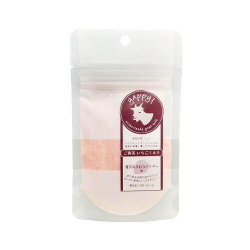 ヤギのミルクは、母乳の栄養素に一番近いミルクです。タウリン含有量は、なんと牛乳の20倍。ビタミンB2は3倍です。高栄養ですが脂肪がかんたんに消化されるので、太りにくいのも特徴です。そんなヤギのミルクに国産のあまおういちごのパウダーをふんだん使用し、贅沢ないちごミルクに仕上げました。わんちゃんが大好きないちごの香りでより味も嗜好性もよりアップしています。通常のミルクよりご褒美感覚であげられるので、特別な日やプレゼントにもおすすめです。