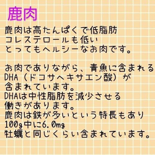 鹿肉、タピオカ澱粉、ビタミンE、食物繊維