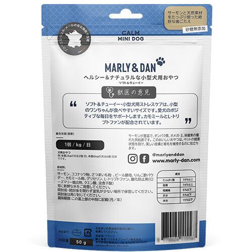 ぜひ、【マリー&ダン(MARLY&DAN)】ストレスケア50gをお試しください!愛犬のストレスを考えた、心地よいおやつタイムを楽しんでください!