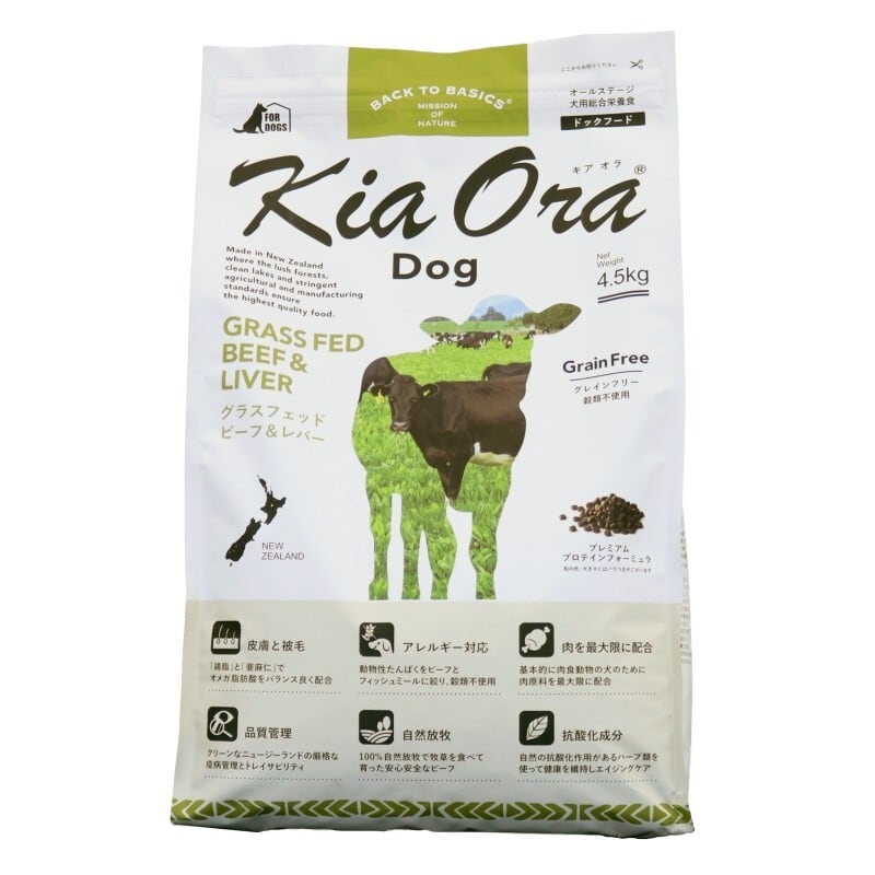 ### 商品説明文【キアオラ(KiaOra)】ドッグフード ビーフ&レバー 4.5kg