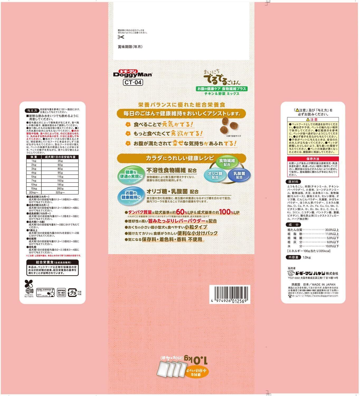 ### 商品説明文【ドギーマン(Doggy Man)】まいにちでるでるごはん お腹の健康ケア食物繊維プラス 1kg