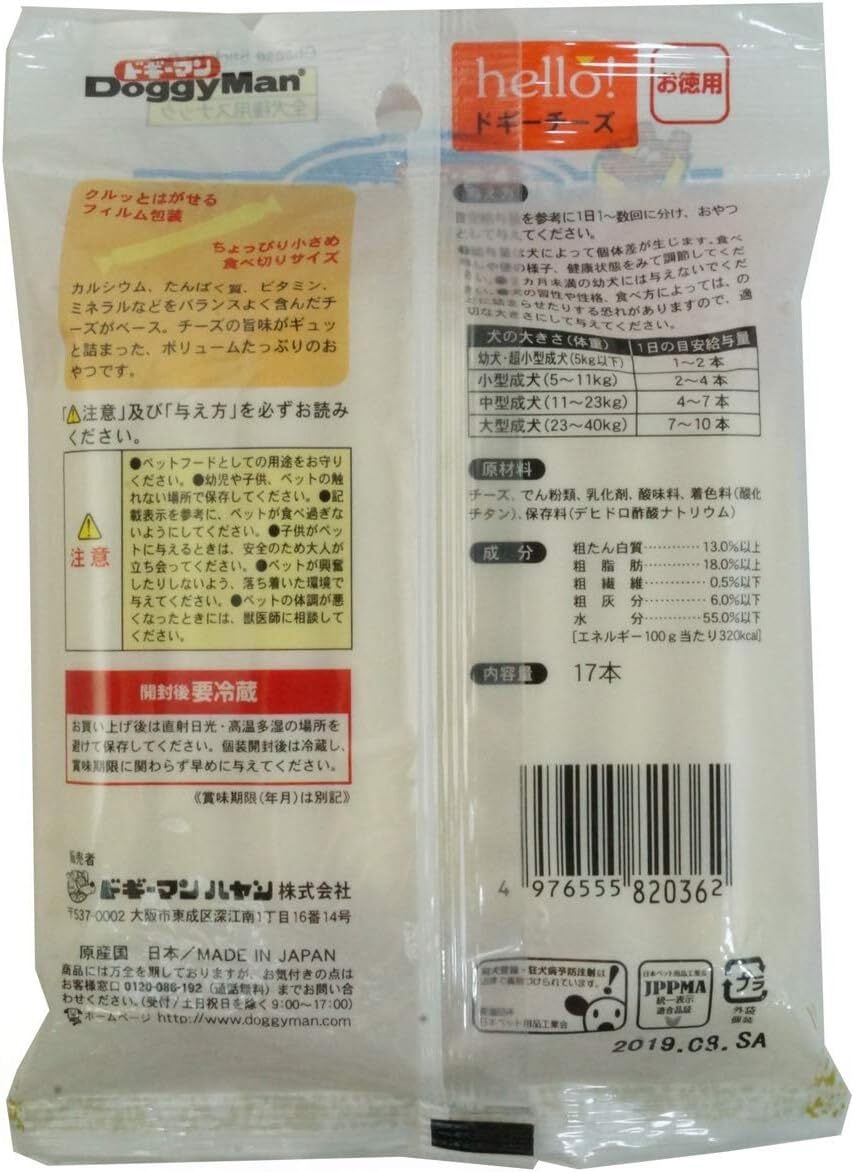 ### 商品説明文【ドギーマン(Doggy Man)】 hello!ドギーチーズ お徳用 17本入