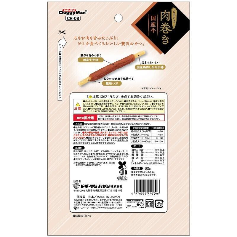 ### 商品説明文【ドギーマン(Doggy Man)】ごちそう肉巻き 国産牛 60g(標準8本)