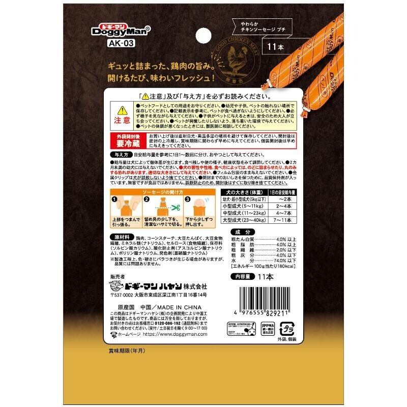 ### 商品説明文【ドギーマン(Doggy Man)】やわらかチキンソーセージ プチ 11本