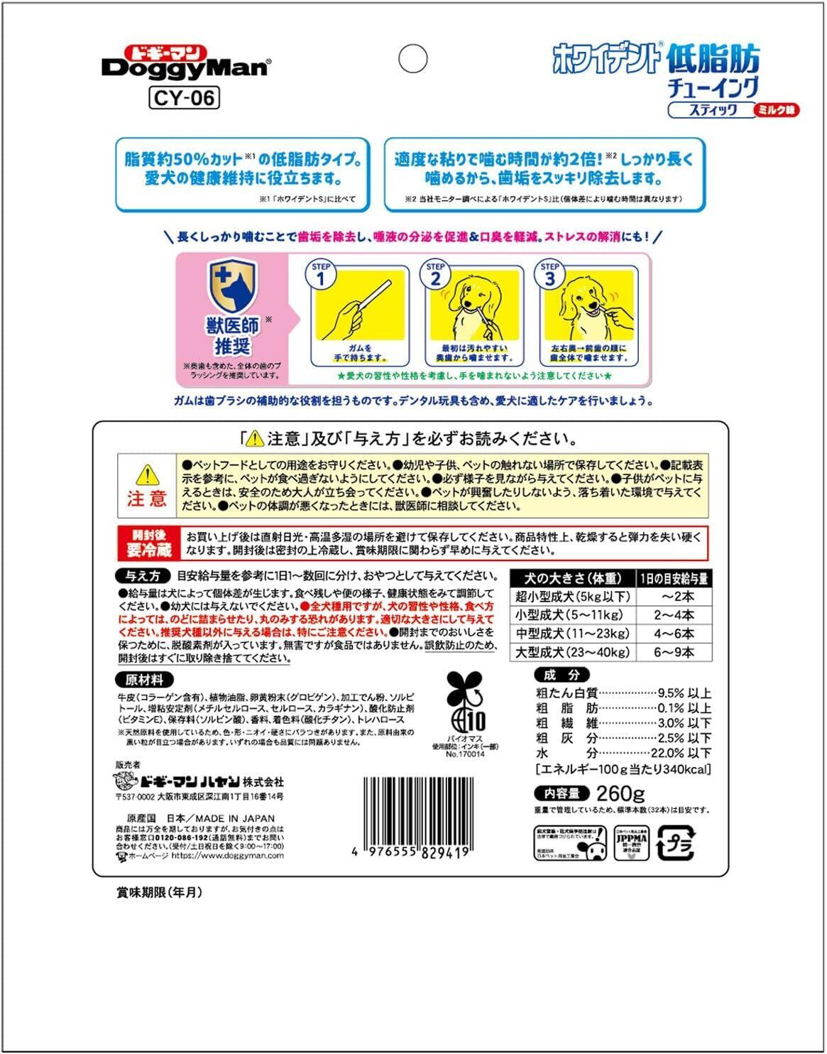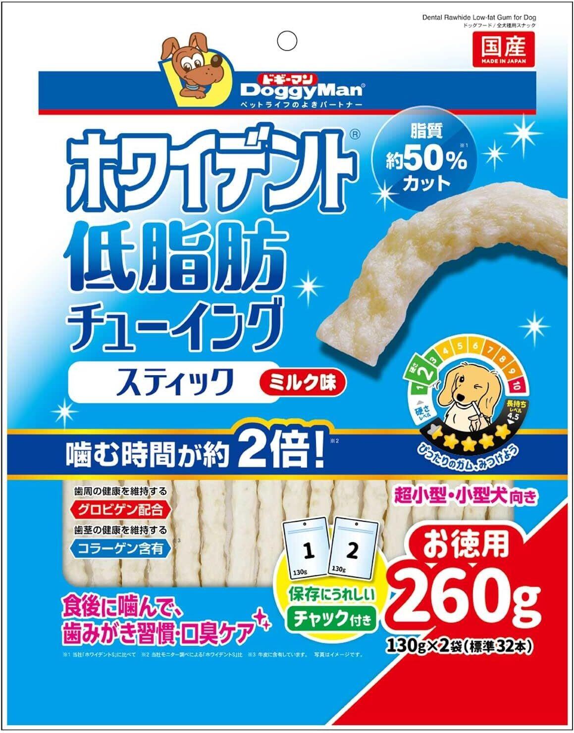 ■ 【ドギーマン】ホワイデント 低脂肪 チューイングスティック ミルク味 260gは、愛犬のおやつに最適なアイテムです!