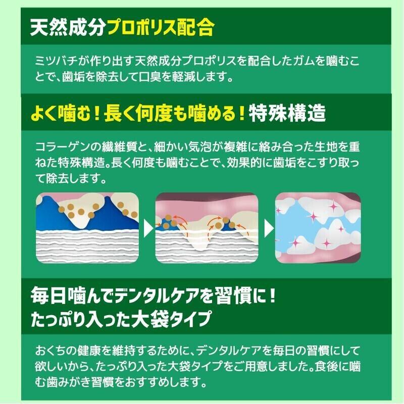 ・ミツバチが作り出す天然成分「プロポリス」を配合した、与えやすいスティックタイプ歯みがきガムです。