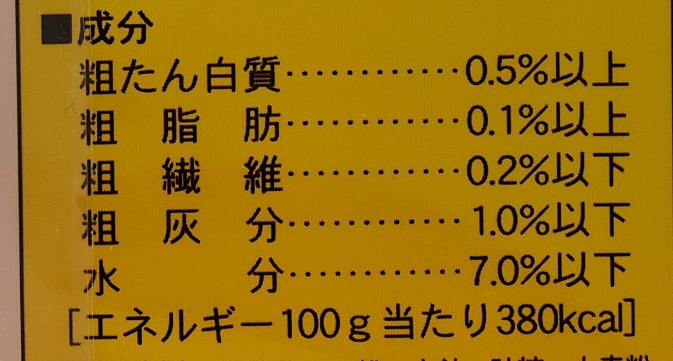 馬鈴薯澱粉、水飴、砂糖、小麦粉、卵、オリゴ糖、液糖、脱脂粉乳、さつまいも、シャンピニオンエキス、ミネラル類(カルシウム)、膨張剤、香料、食用色素(パプリカ、ベニバナ)