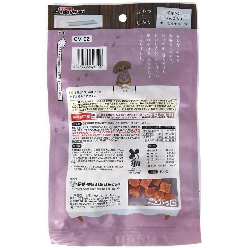 ■ 【ドギーマン(Doggy Man)】おやつじかん チキンとりんご入りもっちりキューブ 100gは、愛犬の日常のおやつや特別なご褒美に最適です!
