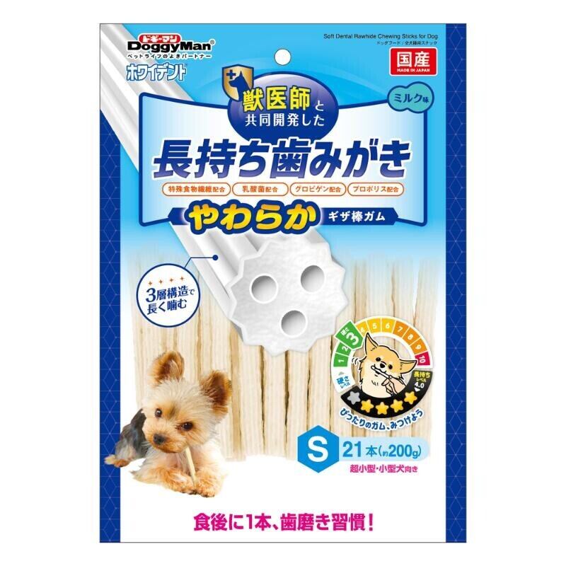 ■ 【ドギーマン(Doggy Man)】 ホワイデント 長持ち歯みがき やわらかギザ棒ガム S 21本は、愛犬の日常のおやつやご褒美にぴったり!