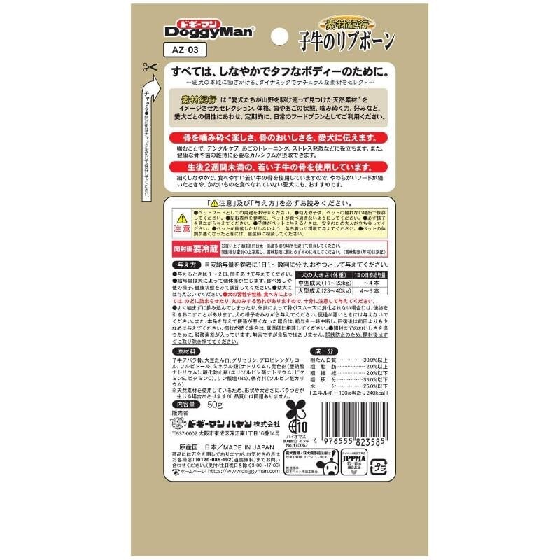 ■ 【ドギーマン(Doggy Man)】 素材紀行 子牛のリブボーン 50gは、愛犬の日常のおやつやご褒美に最適です!