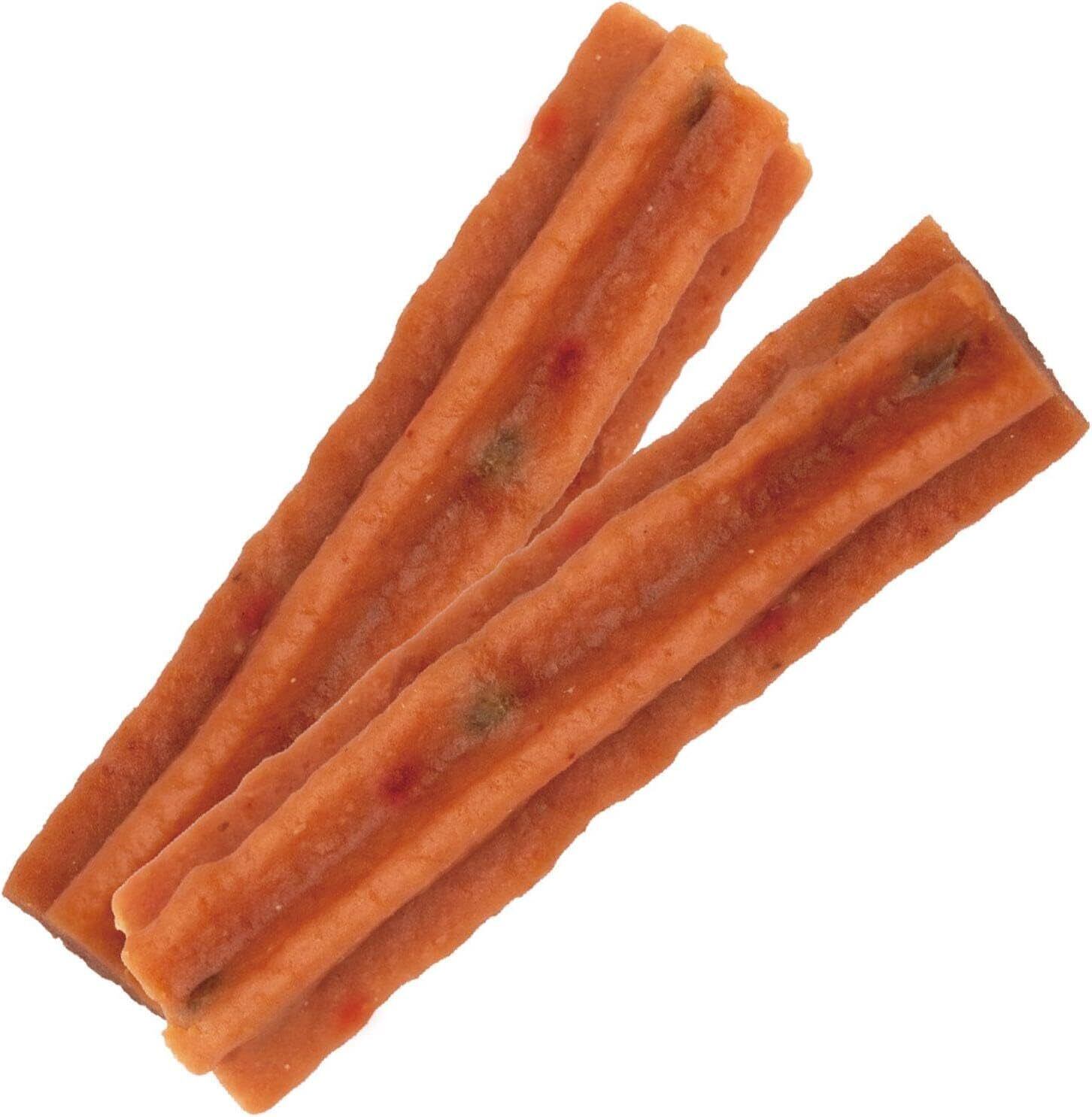 お肉が大好きなワンちゃんのためのボリューム満点もっちりやわらかチキンジャーキーに緑黄色野菜をプラス!
