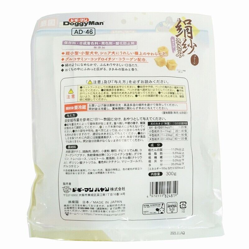 ・愛犬に贈る上質なごほうび、【ドギーマン(Doggy Man)】絹紗キューブ プレーン 300g!ふんわりとした柔らかな食感と、シンプルな味わいが絶妙に調和したこのおやつは、愛犬に特別な喜びをもたらします♪