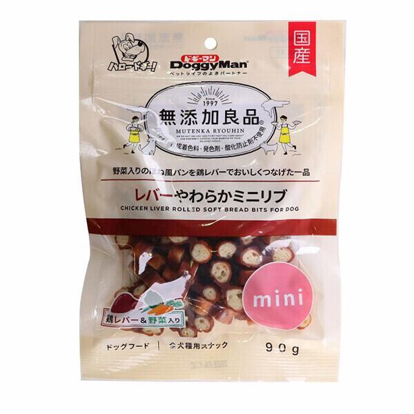 ・愛犬のために厳選された【ドギーマン(Doggy Man)】無添加良品 レバーやわらかミニリブ 90g!国産の新鮮なレバーを贅沢に使用し、愛犬の健康を考えたおやつです♪