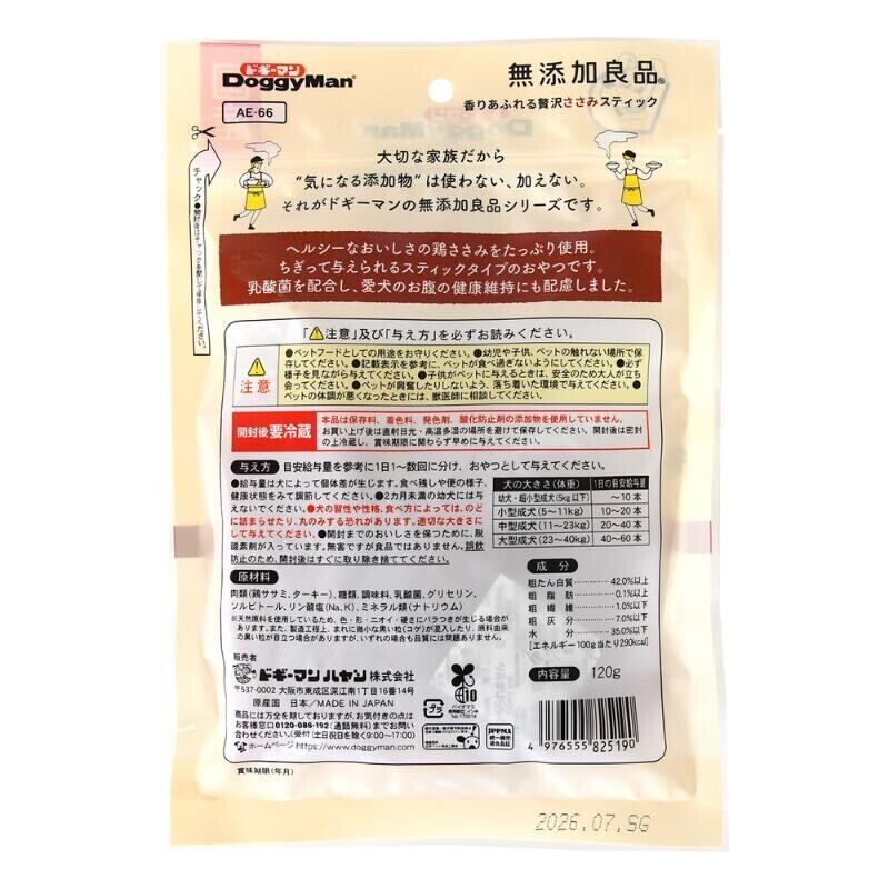 ### 商品説明文【ドギーマン(Doggy Man)】無添加良品 香りあふれる贅沢ささみスティック 120g