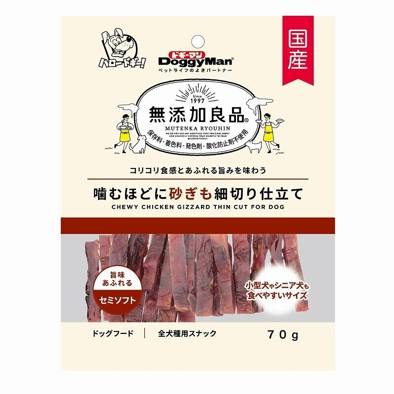 ### 商品説明文【ドギーマン(Doggy Man)】無添加良品 噛むほどに砂ぎも細切り仕立て 70g
