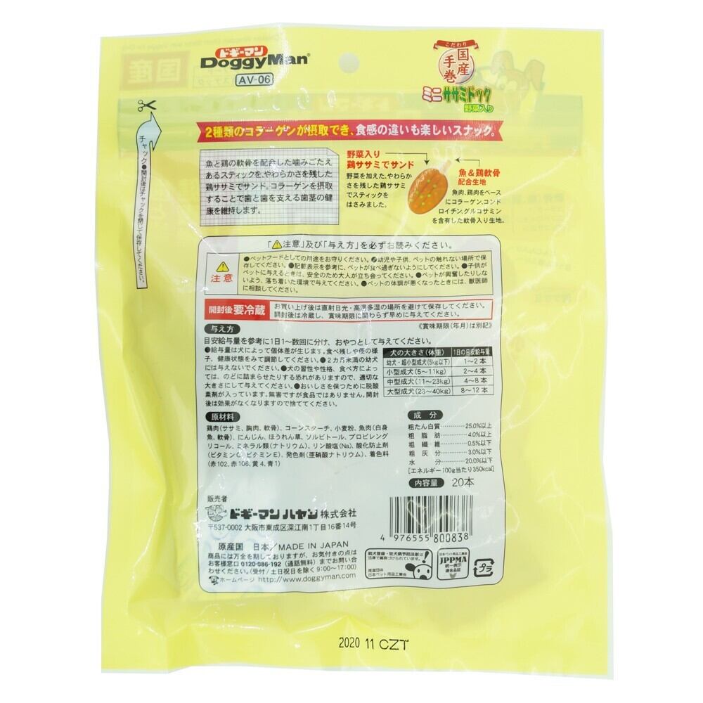 ### 商品説明文【ドギーマン(Doggy Man)】 こだわり ミニササミドック 野菜入り 20本