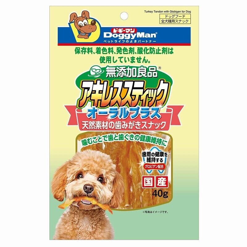 すべての犬種に自信を持ってお届けする【ドギーマン(Doggy Man)】無添加良品)アキレススティックオーラルプラス 40gです。愛犬との楽しいおやつタイムが、より深い関係を築くきっかけとなるでしょう!