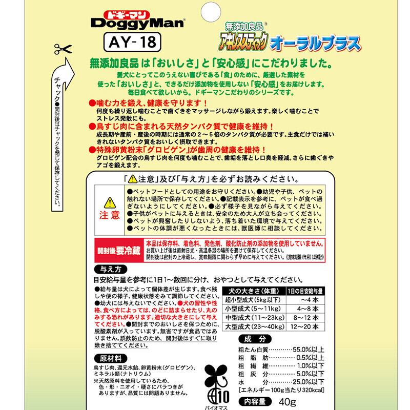 ■ 【ドギーマン(Doggy Man)】無添加良品)アキレススティックオーラルプラス 40gは、トレーニングのご褒美や愛犬との楽しいおやつタイムにぴったりです!