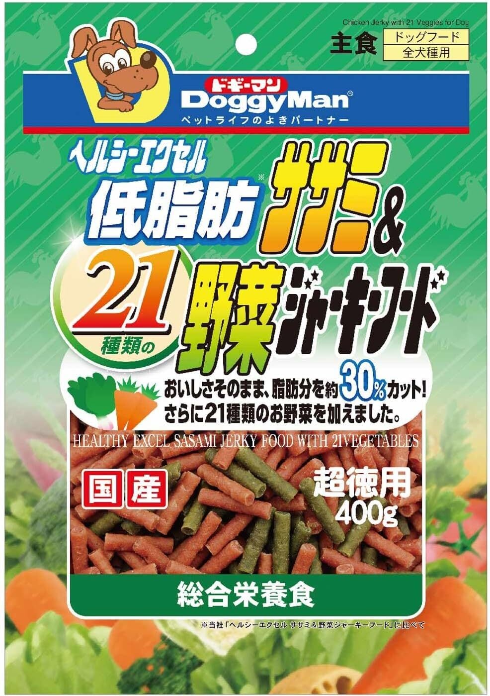 ### 商品説明文【ドギーマン(Doggy Man)】ヘルシーエクセル低脂肪ササミ&21種類の野菜ジャーキーフード 400g