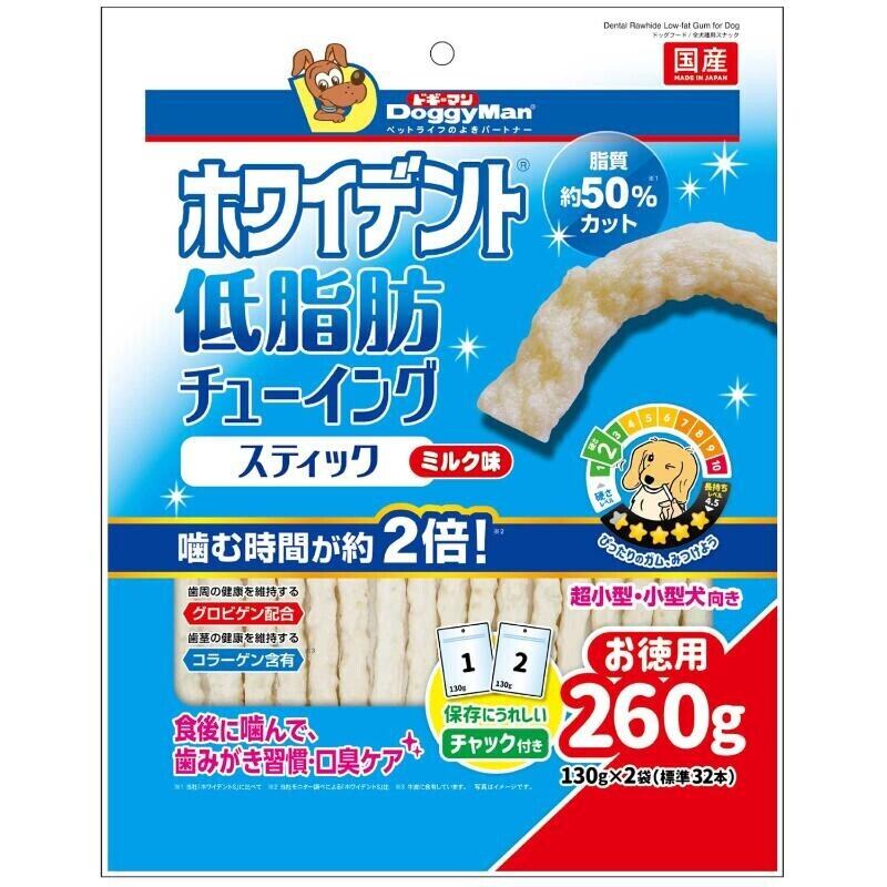 ■ 【ドギーマン(Doggy Man)】ホワイデント 低脂肪チューイングスティック ミルク味 130gは、愛犬との楽しいおやつタイムにぴったり!