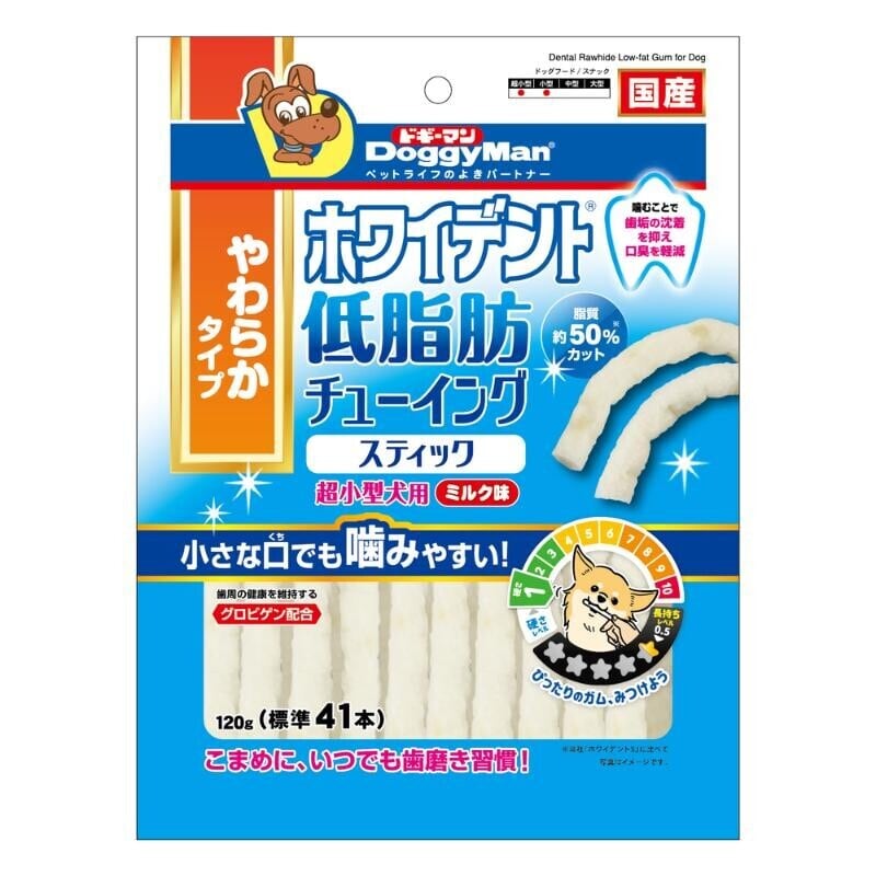 ### 商品説明文【ドギーマン(Doggy Man)】ホワイデント 低脂肪チューイングスティック 超小型犬用 ミルク味 120g