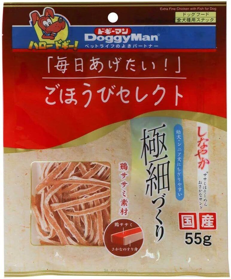 ■ 【ドギーマン(Doggy Man)】ごちそうセレクト やわらかササミほそーめん おさかなサンド 55gは、愛犬との楽しいおやつタイムにぴったり!