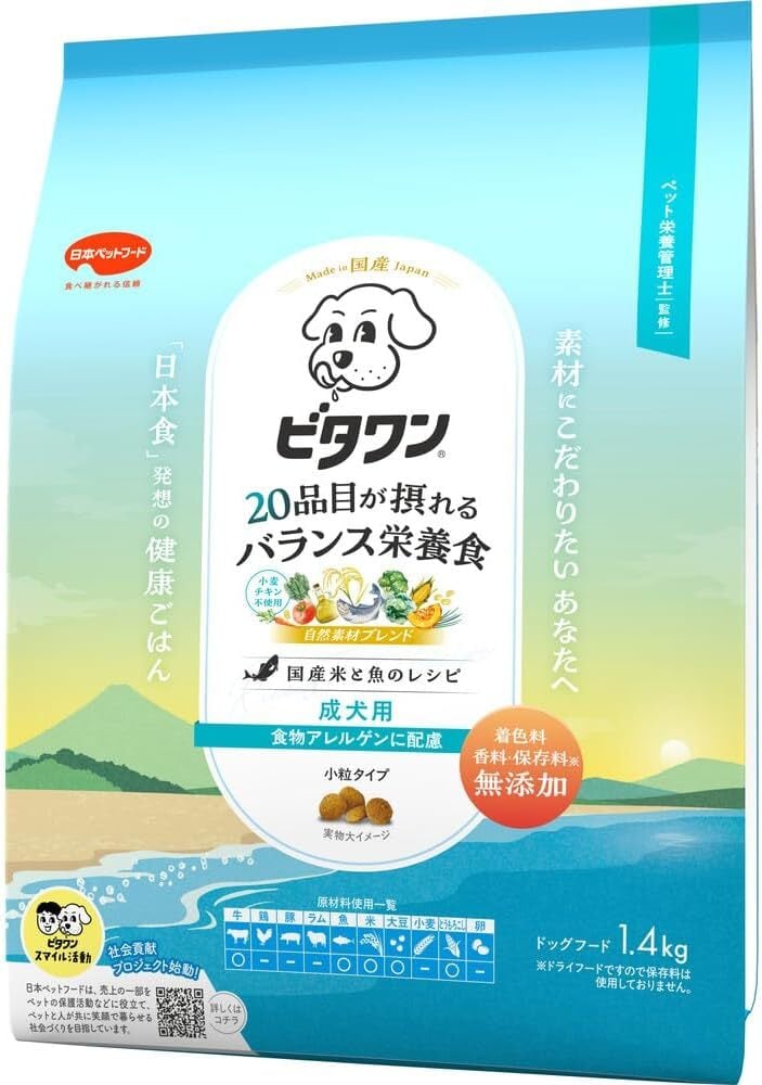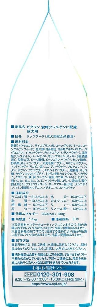 ■ 【日本ペットフード】ビタワン 食物アレルゲンに配慮 成犬用 1.4kgは、愛犬の健康を考えた特別なお食事です!
