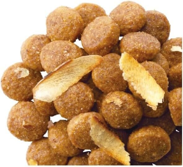 ■素材・成分:穀類(トウモロコシ、コーングルテンミール、小麦粉、パン粉)、肉類(チキンミール、牛肉粉、豚肉粉)、魚介類(フィッシュミール、ニボシ削り(DHA、EPA含む)、フィッシュパウダー、マリンコラーゲン)、油脂類(動物性油脂、植物性油脂)、脱脂大豆、L-カルニチン、ビール酵母(β-グルカン源)、オリゴ糖、ミネラル類(カルシウム、リン、カリウム、ナトリウム、クロライド、銅、亜鉛、ヨウ素)、pH調整剤、アミノ酸類(タウリン、トリプトファン、メチオニン)、ビタミン類(A、B1、B2、B6、B12、D、E、K、ニコチン酸、パントテン酸、葉酸、コリン)、N-アセチルグルコサミン、コンドロイチン、酸化防止剤(ミックストコフェロール、ローズマリー抽出物)